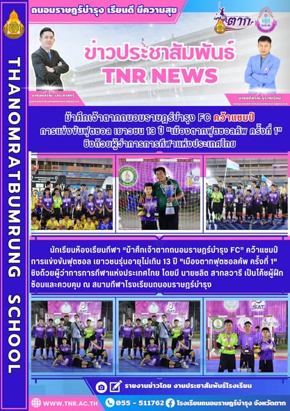 นักเรียนห้องเรียนกีฬา “ม้าศึกเจ้าตากถนอมราษฎร์บำรุง FC” คว้าแชมป์ การแข่งขันฟุตซอล เยาวชนรุ่นอายุไม่เกิน 13 ปี “เมืองตากฟุตซอลคัพ ครั้งที่ 1” ชิงถ้วยผู้ว่าการการกีฬาแห่งประเทศไทย โดยมี นายชลิต สากลวารี เป็นโค้ชผู้ฝึกซ้อมและควบคุม ณ สนามกีฬาโรงเรียนถนอมราษฎร์บำรุง