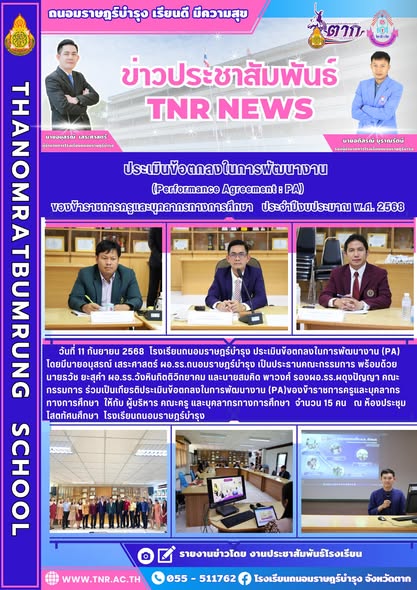 วันที่ 11 กันยายน 2568 โรงเรียนถนอมราษฎร์บำรุง ประเมินข้อตกลงในการพัฒนางาน (PA) โดยมีนายอนุสรณ์ เสระศาสตร์ ผอ.รร.ถนอมราษฎร์บำรุง เป็นประธานคณะกรรมการ พร้อมด้วย นายธวัช ยะสุคำ ผอ.รร.วังหินกิตติวิทยาคม และนายสมคิด พาวงศ์ รองผอ.รร.ผดุงปัญญา คณะกรรมการ ร่วมเป็นเกียรติประเมินข้อตกลงในการพัฒนางาน (PA)ของข้าราชการครูและบุคลากรทางการศึกษา ให้กับ ผู้บริหาร คณะครู และบุคลากรทางการศึกษา จำนวน 15 คน ณ ห้องประชุมโสตทัศนศึกษา โรงเรียนถนอมราษฎร์บำรุง