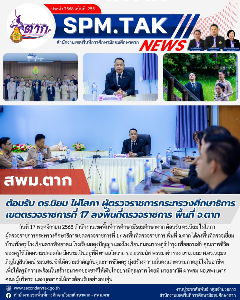 ต้อนรับ ดรนิยม ไผ่โสภา ผู้ตรวจราชการกระกรวงศึกษาธิการ เขตตรวจราชการที่ 17 ลงพื้นที่ตรวจราชการ พื้นที่ ตาก วรวุฒิ เนื้อนิ่ม 17 พฤศจิกายน 2568 จำนวนคนดู 4