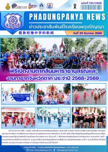 วันที่ 28 ธันวาคม 2568 นายสนั่น วงษ์ดี ผู้อำนวยการโรงเรียนผดุงปัญญา มอบหมายให้ นางนิตยา ไกรวัณ รองผู้อำนวยการโรงเรียน คณะครูและบุคลากรทางการศึกษา ร่วมพิธีเปิดงานตากสินมหาราชานุสรณ์และงานกาชาดจังหวัดตาก ประจำปี 2568-2569 โดยโรงเรียนผดุงปัญญาได้นำคณะครู นักเรียนร่วมเดินขบวนแห่เข้าสู่บริเวณพิธีหน้าศาลสมเด็จพระเจ้าตากสินมหาราช เป็นขบวนที่ 2 เพื่อเทิดพระเกียรติสมเด็จพระเจ้าตากสินมหาราช ประกอบด้วย องก์ที่ 1 ขบวนหลวงยกกระบัตรรั้งราชการเมืองตาก ขบวนมหาดเล็กรายงานอัญเชิญท้องตราราชสีห์ชำระความหัวเมืองฝ่ายเหนือ องก์ที่ 2 ขบวนเจ้าเมืองตากหัวเมืองฝ่ายเหนือ ขบวนพระยาตากและระบำอยุธยา ตามด้วยขุนนางติดตามขบวนเจ้าเมืองตาก
