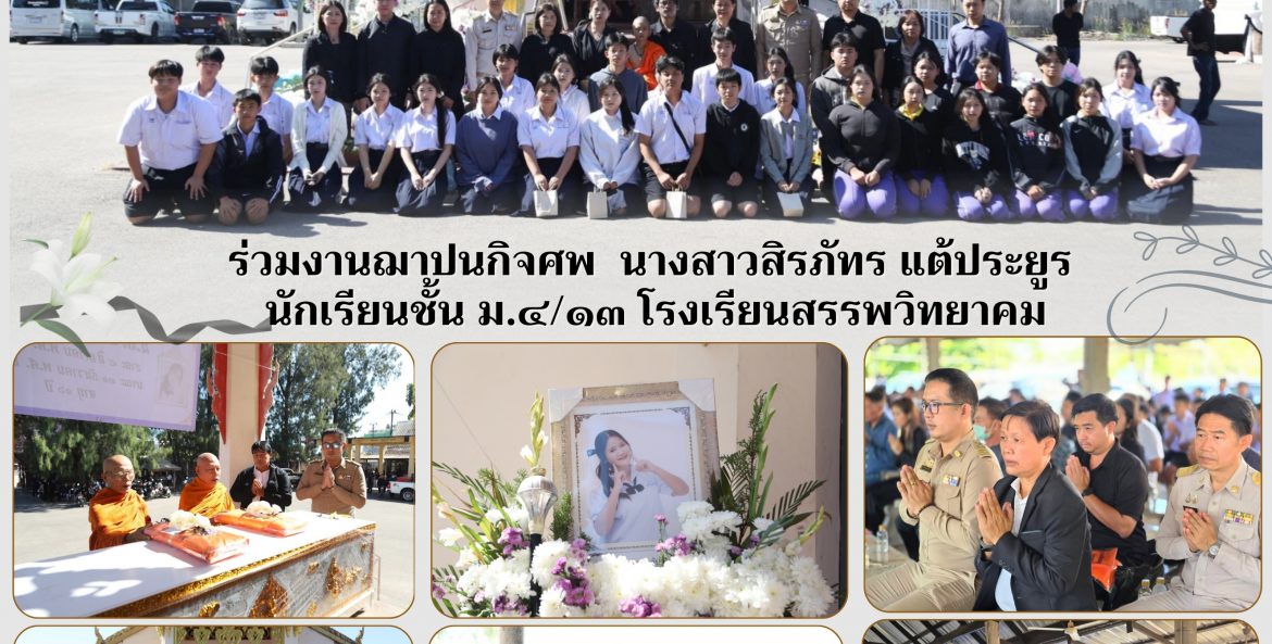 โรงเรียนสรรพวิทยาคม : ร่วมงานฌาปนกิจศพ นางสาวสิรภัทร แต้ประยูร นักเรียนชั้น ม.๔/๑๓ โรงเรียนสรรพวิทยาคม นิรมล พิพัฒน์คุปติกุล 8 มกราคม 2569 จำนวนคนดู 1