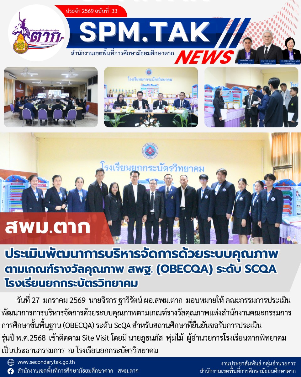 ประเมินพัฒนาการบริหารจัดการด้วยระบบคุณภาพ ตามเกณฑ์รางวัลคุณภาพ สพฐ. (OBECQA) ระดับ SCOA” โรงเรียนยกกระบัตรวิทยาคม วรวุฒิ เนื้อนิ่ม 28 มกราคม 2569 จำนวนคนดู 0
