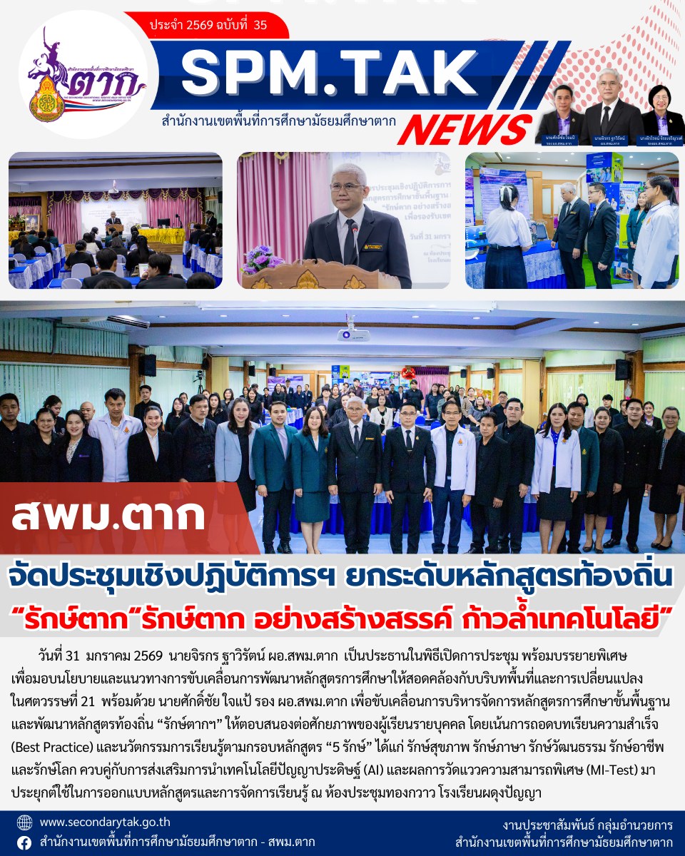 จัดประชุมเชิงปฏิบัติการฯ ยกระดับหลักสูตรท้องถิ่น “รักษ์ตาก”รักษ์ตาก อย่างสร้างสรรค์ ก้าวล้ำเกคโนโลยี” วรวุฒิ เนื้อนิ่ม 1 กุมภาพันธ์ 2569 จัดประชุมเชิงปฏิบัติการฯ ยกระดับหลักสูตรท้องถิ่น “รักษ์ตาก”รักษ์ตาก อย่างสร้างสรรค์ ก้าวล้ำเกคโนโลยี” จำนวนคนดู 1