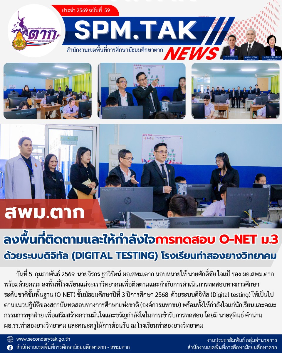 ลงพื้นที่ติดตามและให้กำลังใจการทดสอบ O-NET ม3 ด้วยระบบดิจิทัล (DIGITAL TESTING) โรงเรียนท่าสองยางวิทยาคม วรวุฒิ เนื้อนิ่ม 6 กุมภาพันธ์ 2569 จำนวนคนดู 0