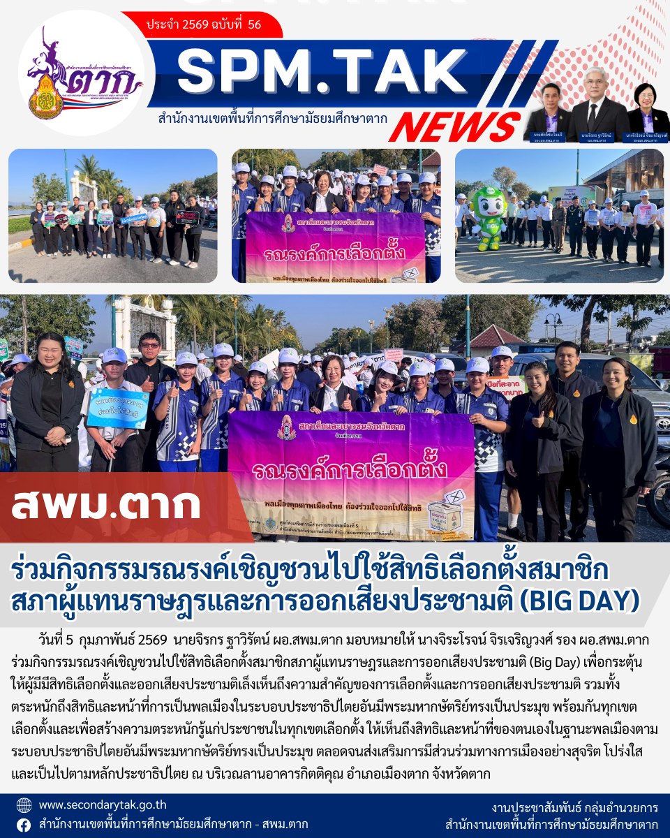 ร่วมกิจกรรมรณรงค์เชิญชวนไปใช้สิทธิเลือกตั้งสมาชิก สภาผู้แทนราษฎรและก้ารออกเสียงประชามติ (BIG DAY) วรวุฒิ เนื้อนิ่ม 6 กุมภาพันธ์ 2569 จำนวนคนดู 0