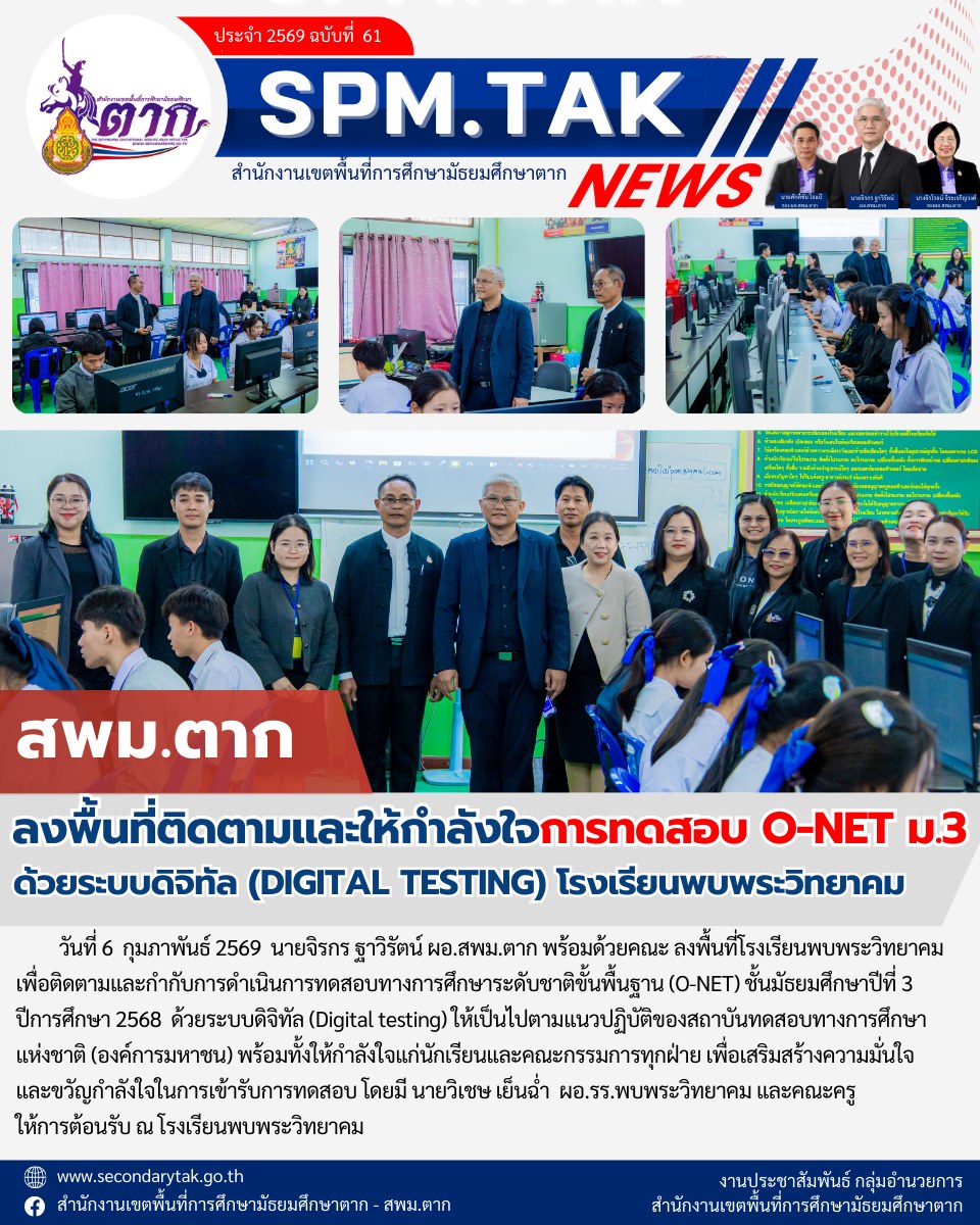 ลงพื้นที่ติดตามและให้กำลังใจการทดสอบ O-NET ม3 ด้วยระบบดิจิทัล (DIGITAL TESTING) โรงเรียนพบพระวิทยาคม วรวุฒิ เนื้อนิ่ม 7 กุมภาพันธ์ 2569 จำนวนคนดู 0