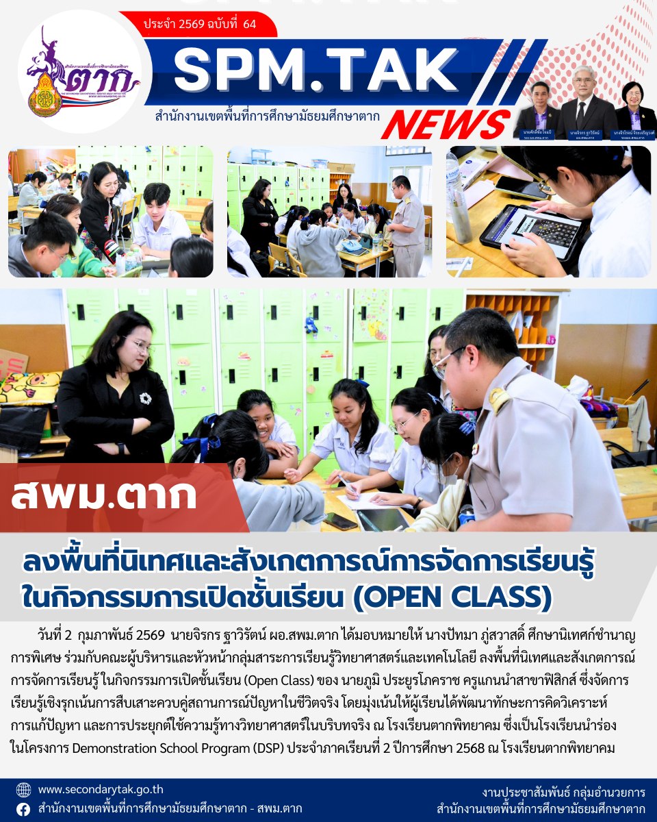 ลงพื้นที่นิเทศและสังเกตการณ์การจัดการเรียนรู้ ในกิจกรรมการเปิดชั้นเรียน (OPEN CLASS) วรวุฒิ เนื้อนิ่ม 3 กุมภาพันธ์ 2569 จำนวนคนดู 1