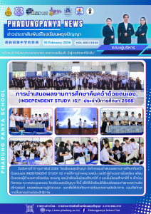 วันอังคารที่ 10 กุมภาพันธ์ 2569 โรงเรียนผดุงปัญญา จัดกิจกรรมนำเสนอผลงานการศึกษาค้นคว้าด้วยตนเอง (Independent Study: IS) ภายใต้การนำของนายสนั่น วงษ์ดี ผู้อำนวยการโรงเรียน พร้อมด้วยรองผู้อำนวยการโรงเรียน คณะครู และนักเรียนชั้นมัธยมศึกษาปีที่ 2 และชั้นมัธยมศึกษาปีที่ 5 เข้าร่วมกิจกรรม ณ หอประชุมพะยอม โรงเรียนผดุงปัญญา ทั้งนี้ เพื่อให้นักเรียนได้เรียบเรียงและถ่ายทอดความคิดสร้างสรรค์ เผยแพร่ผลงานสู่สาธารณะ และเพื่อให้เกิดทักษะการเขียนรายงานเชิงวิชาการ รวมถึงทักษะการสื่อสารอย่างมีประสิทธิภาพ