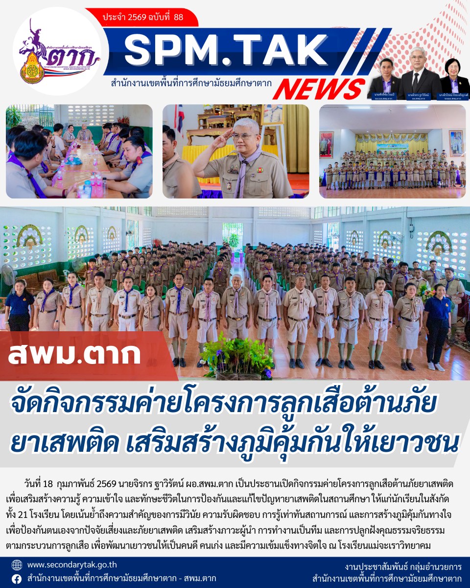 จัดกิจกรรมค่ายโครงการลูกเสือต้านภัย ยาเสพติด เสริมสร้างภูมิคุ้มกันให้เยาวชน วรวุฒิ เนื้อนิ่ม 19 กุมภาพันธ์ 2569 จำนวนคนดู 0