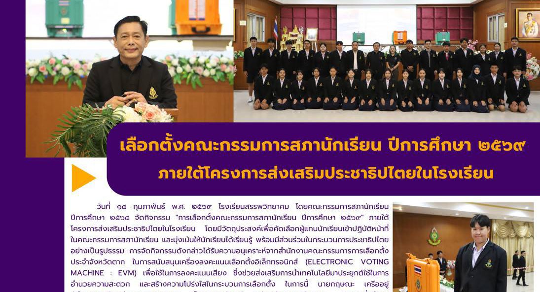 โรงเรียนสรรพวิทยาคม : จัดการเลือกตั้งคณะกรรมการสภานักรียน ชุดใหม่ ปีการศึกษา ๒๕๖๙ นิรมล พิพัฒน์คุปติกุล 24 กุมภาพันธ์ 2569 จำนวนคนดู 0
