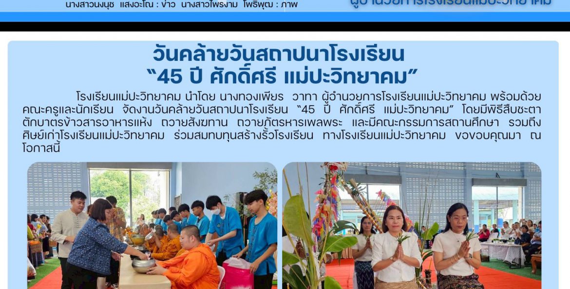 โรงเรียนแม่ปะวิทยาคม : วันคล้ายวันสถาปนาโรงเรียน “45 ปี ศักดิ์ศรี แม่ปะวิทยาคม” ฐานิช จันทร์ต๊ะ 2 มีนาคม 2569 จำนวนคนดู 1