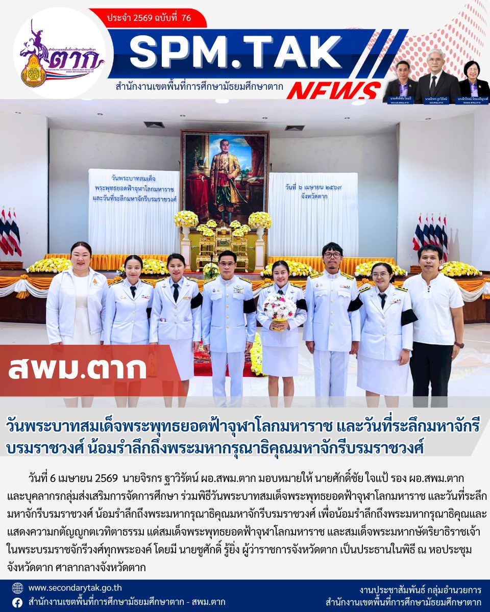 วันพระบาทสมเด็จพระพุทธยอดฟ้าจุฬาโลกมหาราช และวันที่ระลึกมาจักร บรมราชวงศ์ น้อมรำลึกถึงพระมหากรุณาธิคุณมหาจักรีบรมรมราชวงศ์ วรวุฒิ เนื้อนิ่ม 7 เมษายน 2569 จำนวนคนดู 1